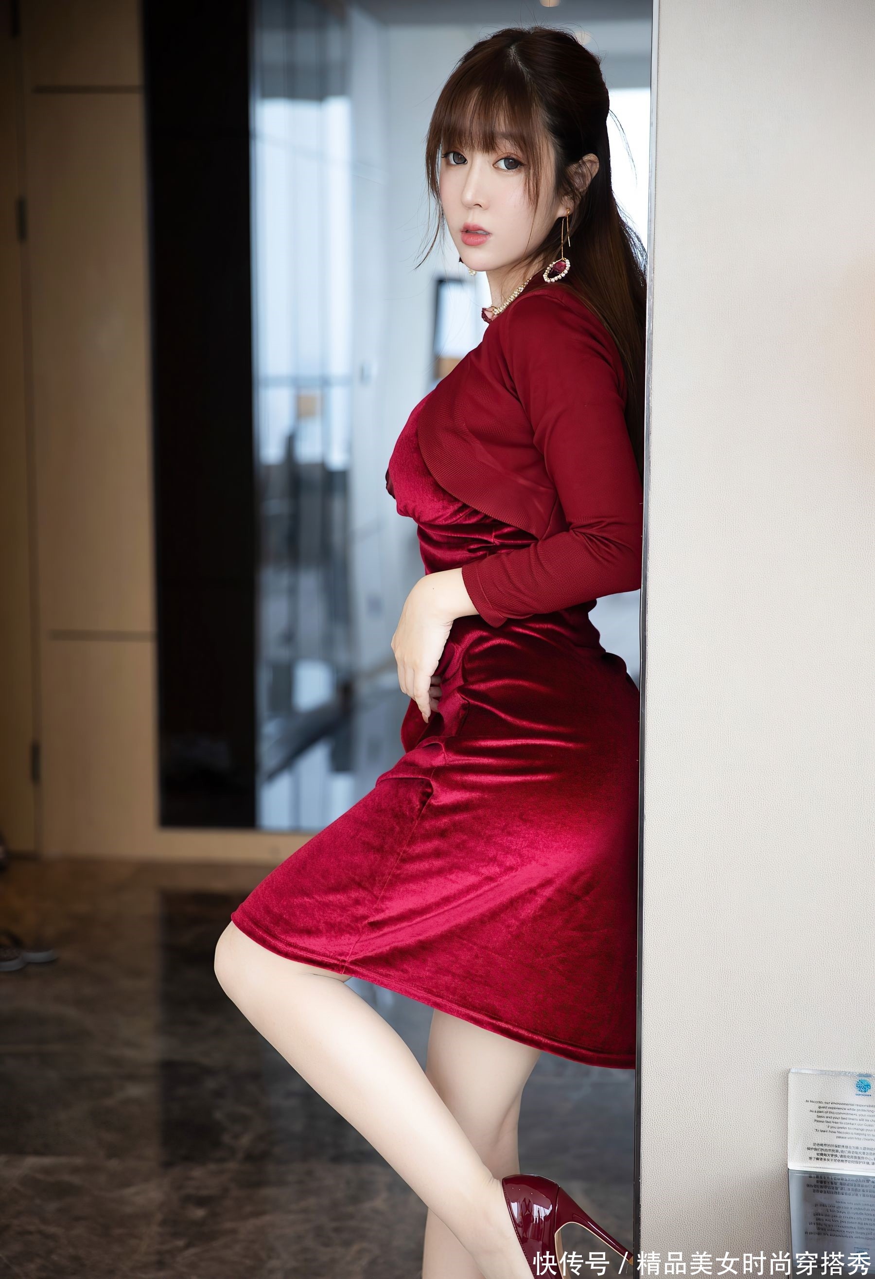美女模特王雨纯,红色丝绒连衣裙奢华优雅,给人满满的女人韵味,解锁高雅温柔之美